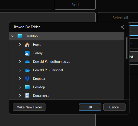 The folder browser and Open & Save dialogs now use the native dark mode in Windows 11. (In build 1272 we reverted to the default Windows Open & Save dialogs instead of custom dialogs to address a performance issue caused by the custom dialogs)
